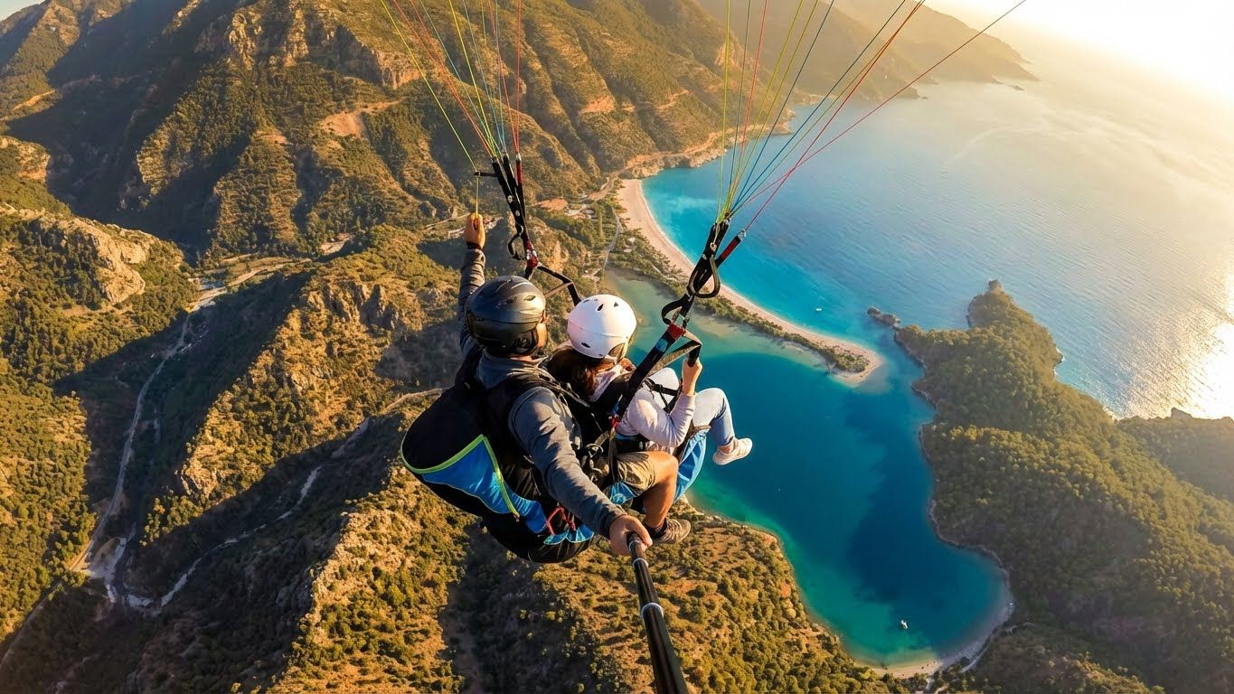 Параглайдинг в Фетхие — это уникальный опыт полёта с горы Бабадаг, которая считается одним из лучших мест для параглайдинга в мире. Во время полёта открываются захватывающие виды на бирюзовые воды Олюдениза, лагуну и живописную береговую линию, создавая идеальное сочетание адреналина и красоты природы. Тандемные полёты на параплане с Бабадага выполняются опытными и лицензированными пилотами. Перед полётом гости получают подробный инструктаж по безопасности, а всё оборудование соответствует международным стандартам. Этот вид активности безопасен и комфортен даже для тех, кто летает впервые. Продолжительность полёта на параплане в Фетхие, в зависимости от погодных условий, составляет в среднем от 25 до 45 минут. Во время полёта возможна профессиональная фото- и видеосъёмка, позволяющая сохранить воспоминания об этом уникальном опыте. Параглайдинг является одной из самых популярных и незабываемых активностей во время отдыха в Фетхие. Чтобы получить подробную информацию о параглайдинге в Фетхие, узнать расписание полётов и оформить бронирование, свяжитесь с нами. Полёты зависят от погодных условий, количество мест ограничено, поэтому рекомендуется раннее бронирование.